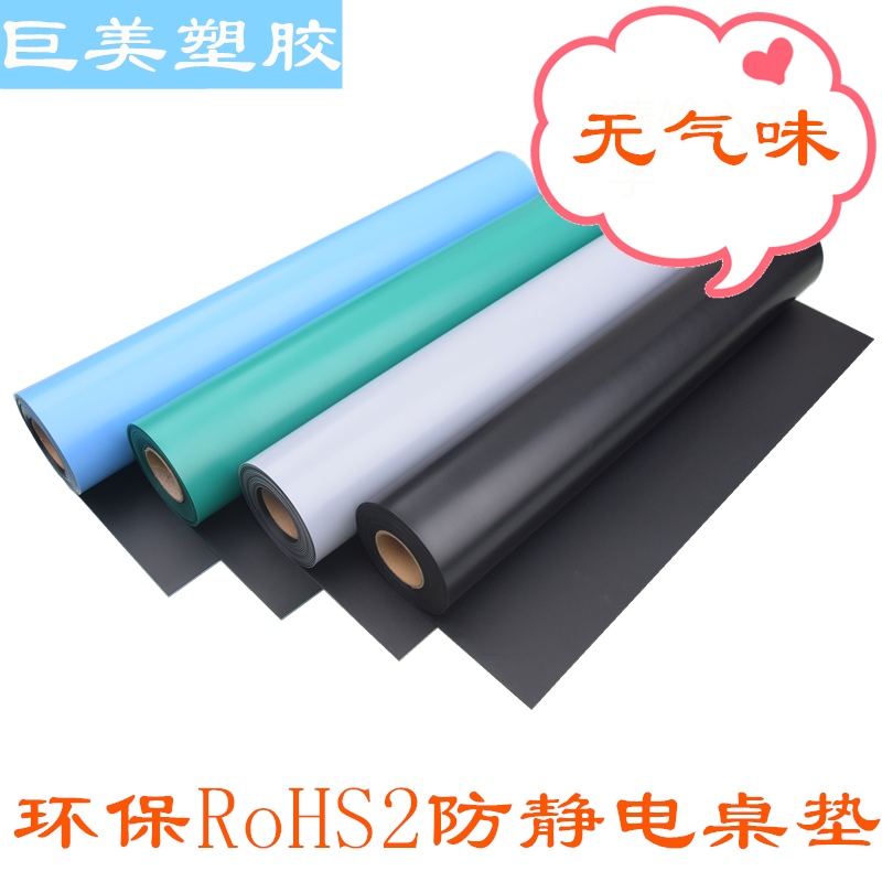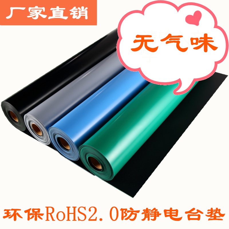 防靜電臺墊主要用抗(導)靜電材料和耗散靜電材料合成橡膠等制做而成。表面層為約 0 5mm 厚的耗散靜電層,底層為約 1 5mm 厚的導電層。